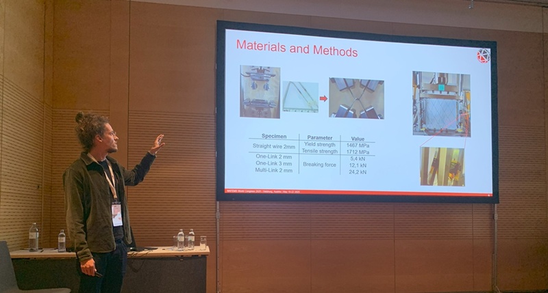 Das WITG war mit Jörg Straub als Redner vertreten. In seinem Vortrag „Numerical and Experimental Analysis of High-Stress Wire Connections in Offshore Fish Farming Cages for Site-specific Lifetime Prediction“ zeigte er Ergebnisse eines dreijährigen Forschungsprojekts mit der Geobrugg AG (Romanshorn). Die Studie kombiniert statische Festigkeitsanalysen, experimentelle Ermüdungsversuche mit bis zu 2 Millionen Lastwechseln und numerische Simulationen.